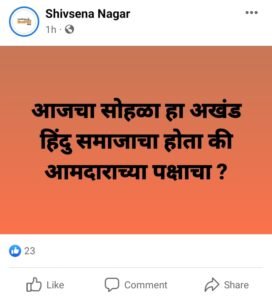 हा कार्यक्रम नेमका अखंड हिंदू समाजाचा होता का राष्ट्रवादीचा होता असा सवालही या फेसबुकवर करण्यात आला आहे त्यामुळे या कार्यक्रमानंतर आता शिवसेना विरुद्ध राष्ट्रवादी असं फेसबुक युद्ध पेटल आहे.