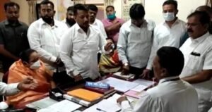 नगर शहर शिवसेनेच्यावतीने माजी महापौर भगवान फुलसादर यांच्या नेतृत्वाखाली स्टेशन प्रबंधक
