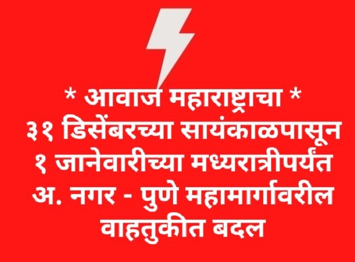 👉मुंबईहून अहमदनगरकडे जाणारी इतर वाहने चाकण – खेड – पाबळ – शिरूरमार्गे अहमदनगरकडे येतील.