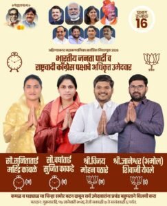 तर केडगाव मध्ये मोठा राष्ट्रीय भूकंप झाला असून एका सोशल मीडियावरील पोचणे सर्वांचे लक्ष वेधून घेतले आहे शिवसेने मध्ये असलेल्या काही नगरसेवकांचे पोस्टर सोशल मीडियावर झळके असून यामध्ये भारतीय जनता पार्टी आणि राष्ट्रवादी काँग्रेस अजित पवार गटाचे अधिकृत उमेदवार म्हणून नावे जाहीर करण्यात आली असून यामध्ये भाजपचे अधिकृत उमेदवार म्हणून कमळाचे चिन्ह या पोस्टरवर टाकण्यात आले आहे त्यामुळे प्रभाग क्रमांक 16 मधून भारतीय जनता पार्टीचे चार उमेदवार फिक्स झाल्याची चर्चा जोरात सुरू आहे.