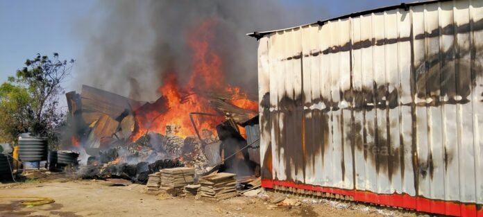 नगर औरणगाबाद रोड वरील के जी एन गादी कारखान्याला आग…