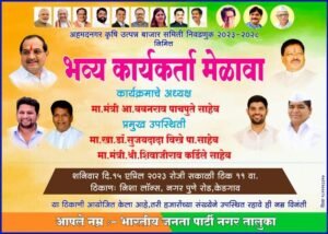 कृषी उत्पन्न बाजार समिती सध्या माजी मंत्री शिवाजीराव कर्डिले यांच्या अधिपत्याखाली आहे. पुन्हा या बाजार समितीवर आपली सत्ता मिळवण्यासाठी माजी मंत्री शिवाजीराव कर्डिले यांनी चांगलीच कंबर कसली आहे कृषी उत्पन्न बाजार समितीच्या निवडणुकीच्या पार्श्वभूमीवर कार्यकर्त्यांचा मेळावा 15 एप्रिल रोजी नगर शहरातील निशा लॉन येथे होणार आहे. या मेळाव्याचे पोस्टर चांगलेच चर्चेत आले आहे. कारण या पोस्टवर अहमदनगर शहरातील जुने राजकीय व्यक्तिमत्व आणि काँग्रेसचे माजी जिल्हाध्यक्ष भानुदास कोतकर यांचा फोटो झळकल्याने हा एक चर्चेचा विषय झाला आहे. हा मेळावा भारतीय जनता पार्टीने आयोजित केला असून खासदार सुजय विखे पाटील माजी मंत्री शिवाजीराव कर्डिले यांच्या उपस्थितीत हा मेळावा होणार आहे. या पोस्टरवर राज्याचे महसूल मंत्री राधाकृष्ण विखे पाटील यांचाही फोटो असून दुसऱ्या बाजूला भानुदास कोतकर यांचा फोटो लागल्याने नगर तालुक्यात हा एक चर्चेचा विषय झालाय.