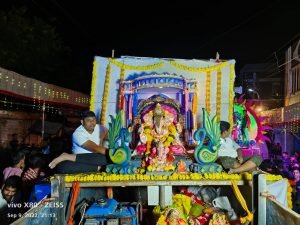 गेले १०दिवस भक्तिसात न्हाऊन निघालेल्या हजारो भाविकांनी आपले लाडके दैवत असलेल्या विहनहर्ता विनायक श्री गणेशाचे शहर व परिसरात उत्साहात विसर्जन करण्यात आले .गेल्या दोन वर्षापासुन कोरोनाचे सावट होते . परंतु या वर्षी मोठ्या मंडळाबरोबर बाल गोपाळ मंडळांनी सहभाग मोठ्या उत्साहात घेतला होता . डीजे व ढोल ताशांच्या गजरात ; गुलालाची उधळण करीत सार्वजनिक मंडळाच्या कार्यकर्त्यांनी श्रीगणेशाचे मोठ्या जल्लोषात विसर्जन करण्यात आले .