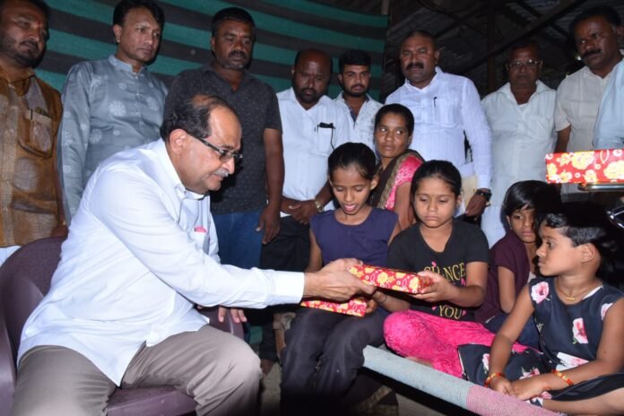 पालकमंत्री राधाकृष्ण विखे पाटील यांनी शेतकरी कुटुंबियां समवेत साजरी केली दिवाळी