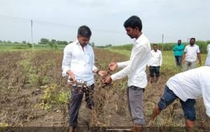 अहमदनगर जिल्ह्यातील पारनेर तालुक्यातील काही भागाला परतीच्या पावसाने चांगलेच झोपून काढले आहे. त्यामुळे शेतातील पिके आडवी झाली असून शेतकऱ्यांचे मोठे नुकसान झाले आहे. पारनेर नगर मतदार संघाचे राष्ट्रवादीचे आमदार निलेश लंके यांनी या नुकसानीची पाहणी करण्याकरता थेट शेतकऱ्यांचे बांध गाठले असून त्या ठिकाणी जाऊन नुकसानीची पाहणी आणि त्यांना धीर देण्यासाठी निलेश लंके हे चिखल तुडवत सध्या शेतकऱ्यांच्या बांधावर जात असल्याचे चित्र पाहायला मिळत आहे. पावसामुळे शेतामध्ये जाण्यासाठी रस्ते नाहीत मोठ्या प्रमाणावर चिखल झाला असल्यामुळे धड चालताही येत नाही मात्र शेतकऱ्यांच्या शेतात जाऊन पाहणी करून त्यांना धीर देण्यासाठी आमदार लंके यांनी थेट हातात चप्पल घेऊन शेतकऱ्यांच्या बांधावर जाऊन त्या शेतकऱ्यांना धीर दिला आहे. सरकारने ओला दुष्काळ जाहीर करून सरसकट सर्वांच्या पंचनामे करावे अशी मागणी आमदार निलेश लंके यांनी सरकारकडे केली आहे.