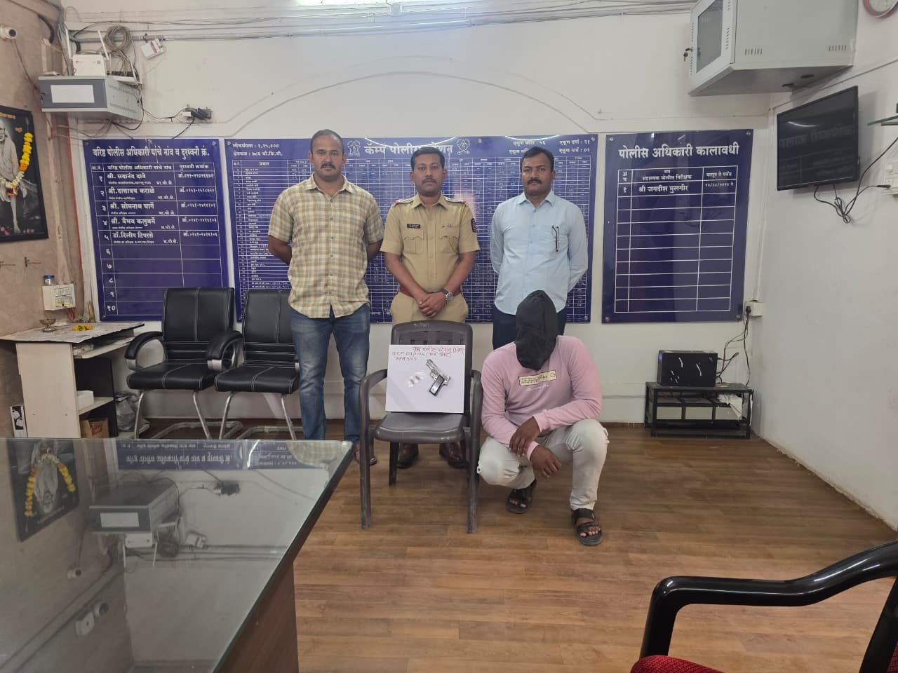भिंगार कॅम्प पोलीस स्टेशनचे सहा. पोलीस निरीक्षक जगदीश मुलगीर यांना मिळालेल्या माहितीनुसार बाराबाभळी परिसरातील हॉटेल शौर्य समोर एक अज्ञात इसम गावठी बंदूक कमरेला लावून संशयरीत्या फिरत असल्याची माहिती मिळाली होती. सहा. पोलीस निरीक्षक जगदीश मुलगीर, योगेश पवार, पोलीस अंमलदार, विलास गारुडकर, रामनाथ डोळे, प्रमोद लहारे यांनी त्या ठिकाणी जाऊन त्या संशयित इसमास पकडले असता तो आकाश पवार असल्याचे लक्षात आल्यानंतर त्याला अहिल्यानगर जिल्हातुन दोन वर्षाकरीता हद्दपार केलेले असतानाही तो अहिल्यानगर जिल्ह्यात फिरत असून तसेच बेकायदेशीर शस्त्र बाळगत असल्याचं निष्पन्न झाल्याने कॅम्प पोलीस स्टेशनमध्ये त्याच्या विरोधात आर्म अॅक्ट ३/२५, महा.पो.का.क १९५१ चे कलम १४२ प्रमाणे गुन्हा दाखल करण्यात आला आहे.