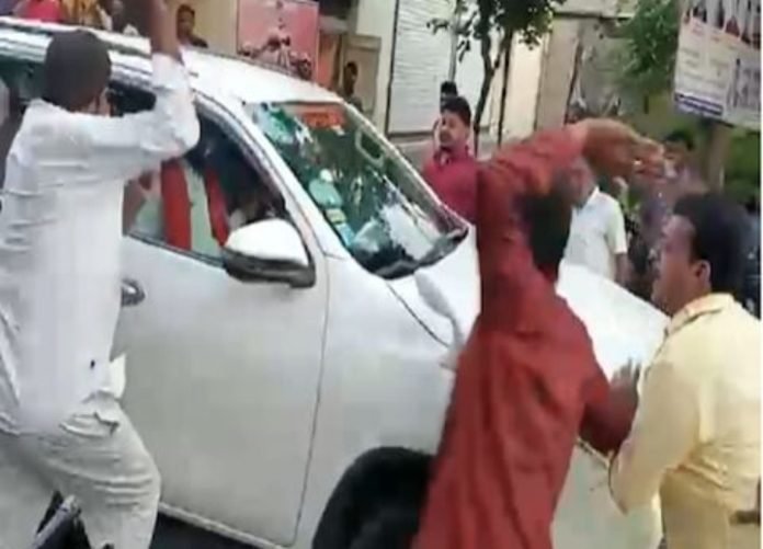 बंडखोर आमदारांबाबत (Rebel MLA) आतापर्यंत केवळ रोष आणि घोषणाबाजी केल्या जात होत्या. पण अमरावतीमध्ये (Amravati) धक्कादायक प्रकार समोर आला आहे. आमदार संतोष बांगर (mla Santosh Bangar) यांचा ताफा अमरावती जिल्ह्यातील अंजनगाव सुर्जीमध्ये दाखल होताच संतप्त शिवसैनिकांनी त्यांच्या ताफ्यावर हल्ला चढविला.